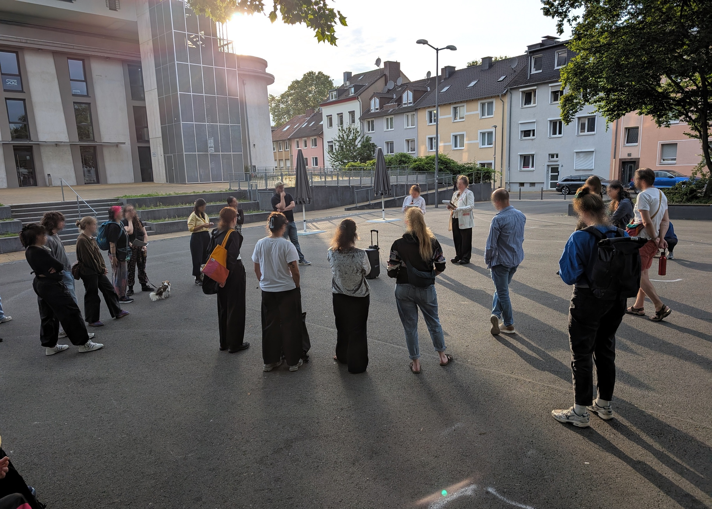 In geblockten Veranstaltungen wird zunächst eingeführt in das Forschungsprojekt von Künstlerin Julia Nitschke zu grenzüberschreitenden Identitäten und postindustriellen Relationen zwischen Ruhrgebiet und Oberschlesien, in Praktiken des Forschenden und Künstlerischen Lernens, und der Vielfalt an Methoden in der Medienwissenschaft, insbesondere der Gender Media Studies.