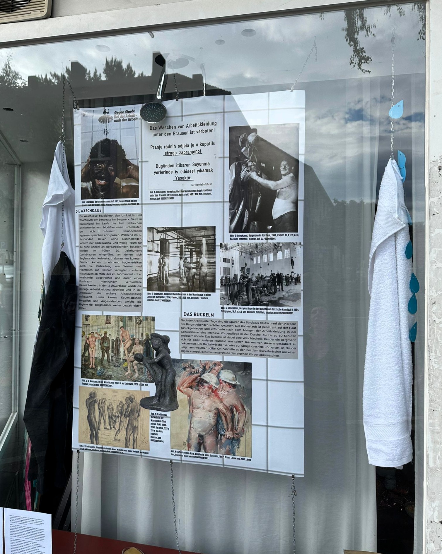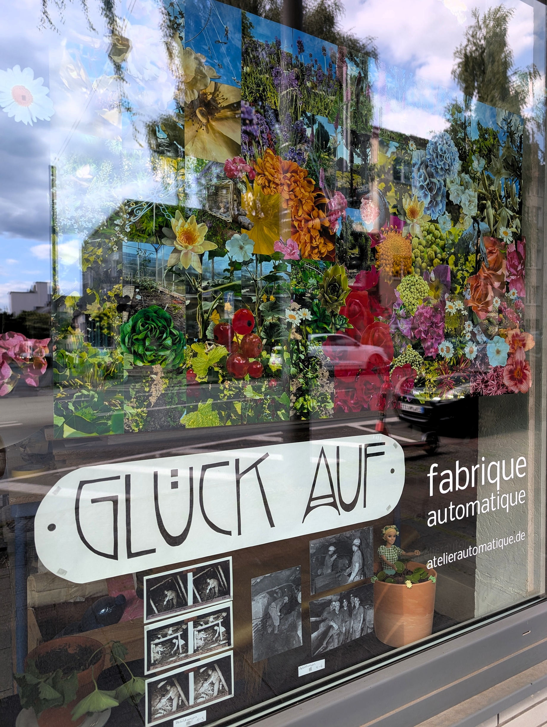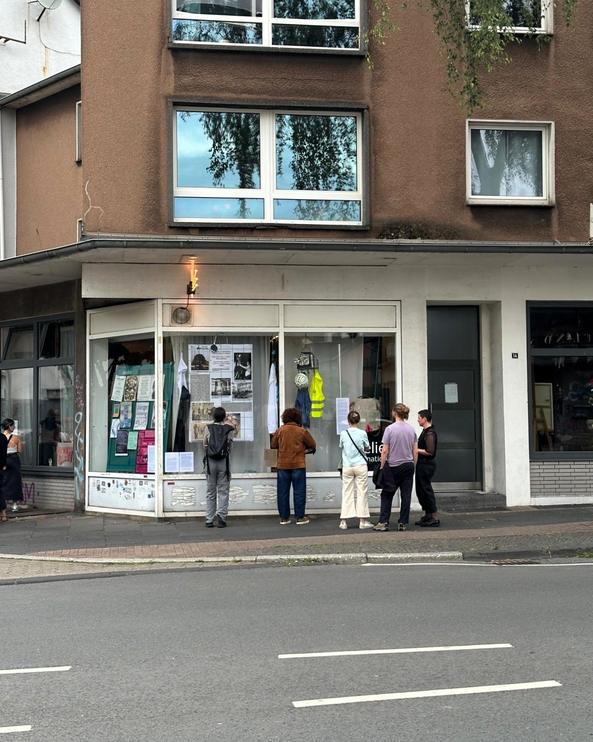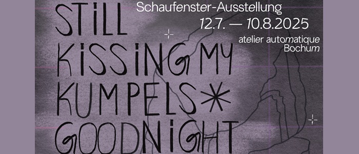 Die Ausstellung «Still Kissing My Kumpels* Goodnight. Queere Schichten zwischen Ruhrgebiet und Oberschlesien» in den Schaufenstern des Kunst- und Kulturraums «atelier automatique» machte die Ergebnisse der Forschungsprozesse der Öffentlichkeit über einen Zeitraum von 4 Wochen zugänglich (12.07. – 10.08.2025). In den Schaufenstern jederzeit öffentlich zugänglich realisiert die Ausstellung größtmögliche Sichtbarkeit im Stadtraum.