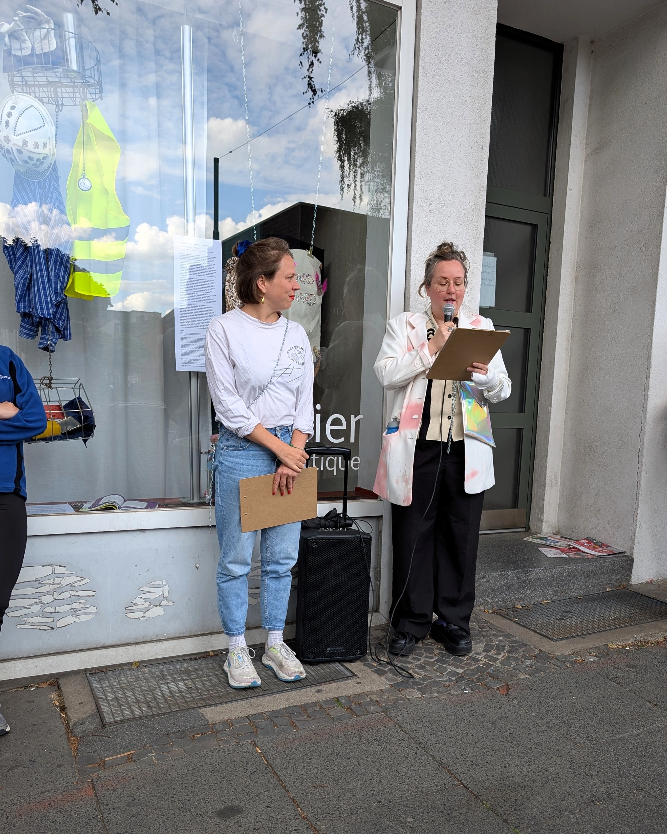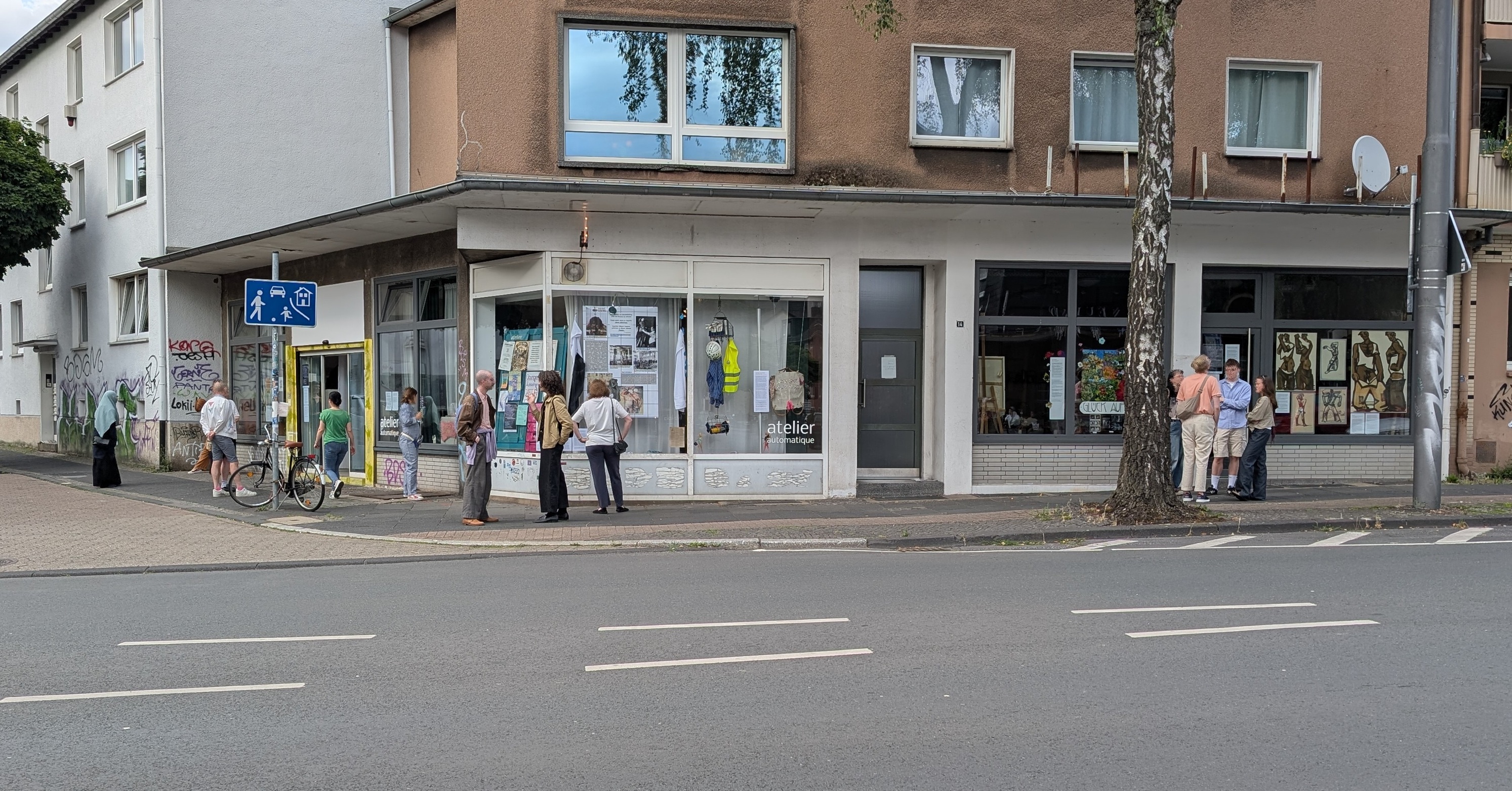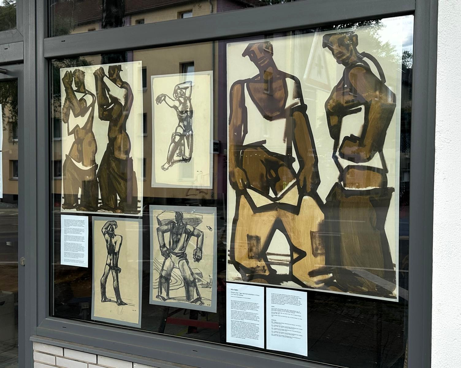 Die Ausstellung «Still Kissing My Kumpels* Goodnight. Queere Schichten zwischen Ruhrgebiet und Oberschlesien» in den Schaufenstern des Kunst- und Kulturraums «atelier automatique» machte die Ergebnisse der Forschungsprozesse der Öffentlichkeit über einen Zeitraum von 4 Wochen zugänglich (12.07. – 10.08.2025). In den Schaufenstern jederzeit öffentlich zugänglich realisiert die Ausstellung größtmögliche Sichtbarkeit im Stadtraum.